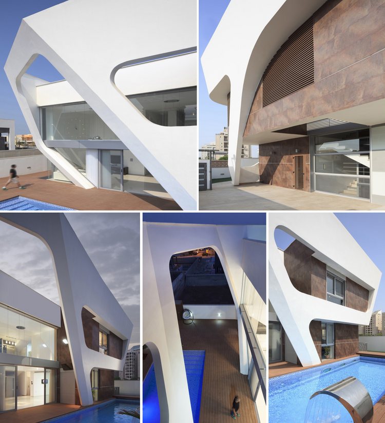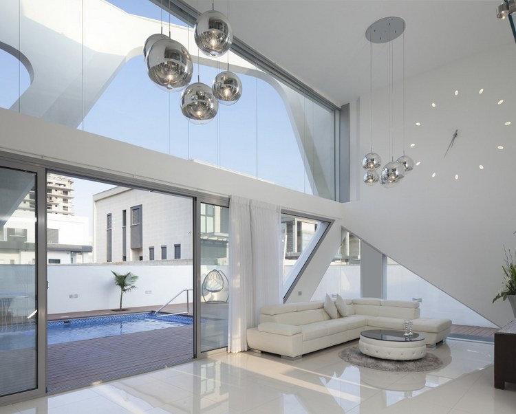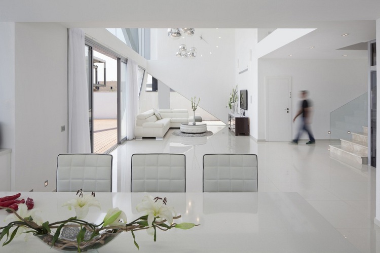 別墅設計,阿什杜德別墅(House in Ashdod)這幢獨特的現(xiàn)代別墅位于地中海沿岸的以色列西岸港市阿什杜德。這是一幢很有個性的建筑設計,白色立面的結(jié)構(gòu)仿佛是給住宅建筑裹上的外衣。兩層高的生活空間采用了大面積玻璃,室內(nèi)通透明亮。光束穿過白色立面的框架結(jié)構(gòu)在室內(nèi)形成各種形狀的光亮和陰影,如同一場光與影的游戲。