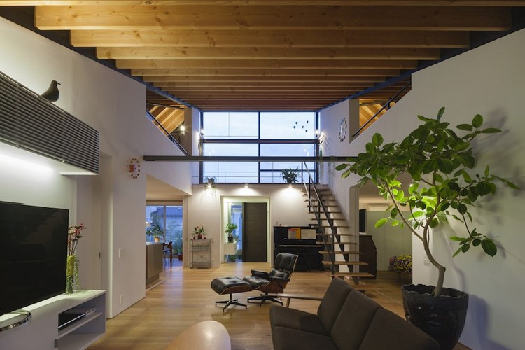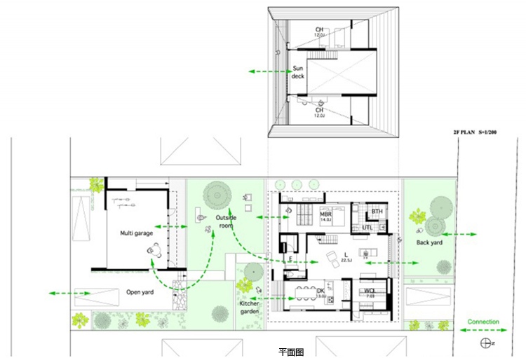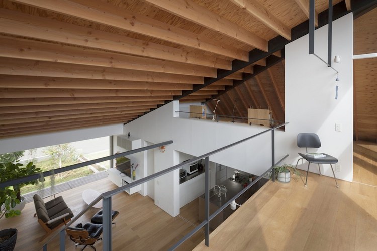 別墅設計,四坡屋頂別墅別墅位于茨城縣新開發(fā)區(qū)”里山”或半自然林地將要出售的一個地段??蛻粢蟊容^簡單:創(chuàng)建一個私人住宅并設有兩個車庫。利用這一區(qū)域,設計團隊提出“寬敞的平房平臺”概念,作為一個開放的空間與周圍的鄰居共享,達到空間與自然的連接。