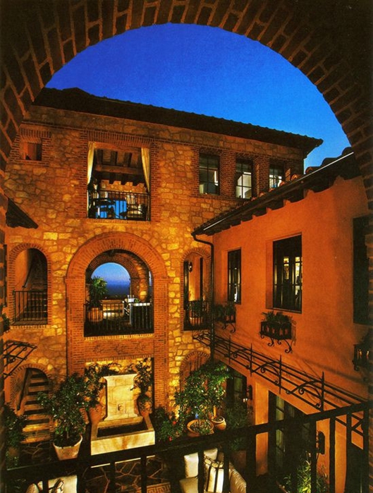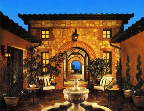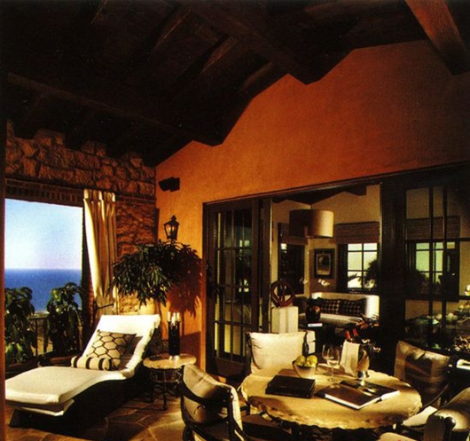 在玄關(guān)前方庭院的上方,這座別墅顯露出了令人驚奇的部分:一個(gè)極漂亮的三層第二庭院允許陽光和海岸微風(fēng)滲入并穿透這所雄偉的房子的中心部分。隨著空間連 續(xù)性的展開,整幢房子呈現(xiàn)出了精細(xì)刻畫的石頭和灰泥混合物,在這視覺上把房子與場點(diǎn)的沿海雄偉風(fēng)光連接在了一起。狹長的風(fēng)景帶從后涼廊和露天涼臺的上部延伸到地平線,在這里,海景構(gòu)成了整個(gè)房子的一種靜謐感。