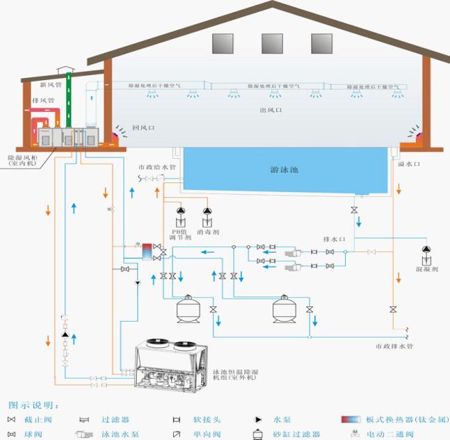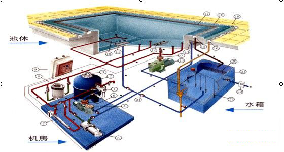 池水的過濾,是利用過濾精度高達(dá)6-15微米的過濾袋。通過吸水口將池水吸入,經(jīng)過濾袋過濾后,向前面及側(cè)面的噴嘴排出泳池。這樣池水就產(chǎn)生了回旋原理,確保池中的水都經(jīng)由過濾袋過濾。