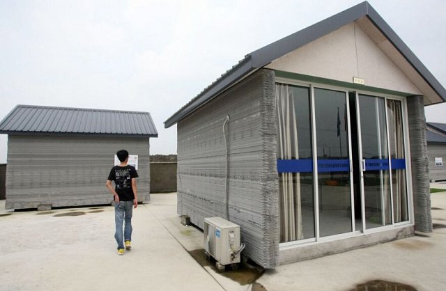 8 月 21 日,上海,10 幢 3D 打印建筑在上海張江高新青浦園區(qū)內(nèi)正式交付使用,作為當(dāng)?shù)貏?dòng)遷工程的辦公用房。這些 " 打印 " 出來(lái)的建筑墻體是用建筑垃圾制成的特殊 " 油墨 ",按照電腦設(shè)計(jì)的圖紙和方案,經(jīng)一臺(tái)大型的 3D 打印機(jī)層層疊加噴繪而成,10 幢小屋的建筑過(guò)程僅花費(fèi) 24 小時(shí)。