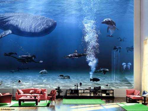(下圖:比爾·蓋茨書(shū)房里巨大的“海世界”)