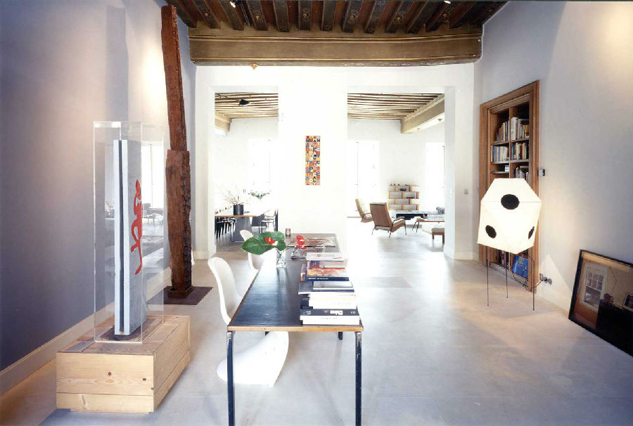 一張桌子、一個(gè)窗戶、一個(gè)皇家廣場(chǎng),雕像和馬。在巴黎孚日廣場(chǎng)附近,F(xiàn)uksas建筑師夫婦住在這里。設(shè)計(jì)大師Jean Prouvé的原版家具、或是20世紀(jì)的不少經(jīng)典設(shè)計(jì),還有一些民間工藝品在這個(gè)寬闊的空間內(nèi)協(xié)調(diào)一致。在入口處還有一個(gè)戰(zhàn)士雕像等待著這對(duì)建筑師遠(yuǎn)途出差回來(lái)的時(shí)刻。